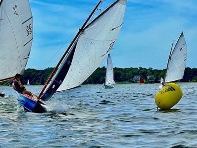 Most boats are eligible to race with our handicap system. Boats that participate must be single hull and between 12 and 20 feet. We have three fleets comprised of boats 14 feet and under, 15 to 20 feet, and performance boats. Combined fleet starts have average between 12-14 boats per weekend for the last three years. The majority of boats include: Arey’s Pond 14 (including XFC14), Arey's Pond 16 (Lynx and Cuddy), Baybirds, Classic Cats, Fisher Cats, Marshall 15' (Sandpiper), Marshall 18' (Sanderling). Other boats that participate are Beetles (plus Kittens and Rainbow Cats), 420's, Flying Scots, Daysailors, Rhodes 19, Lasers, Widgeons, Sunfish, and other APBY catboats (e.g. Caracal). All sailboat types are welcome.