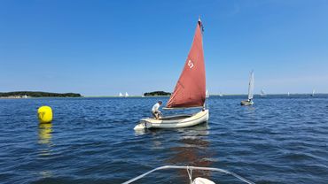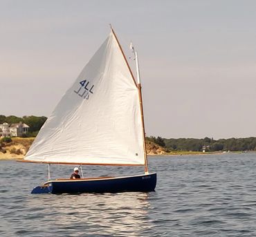 First for the day in 14' fleet: Jill on QA Girl (with 3 first-places finishes, she is fast)